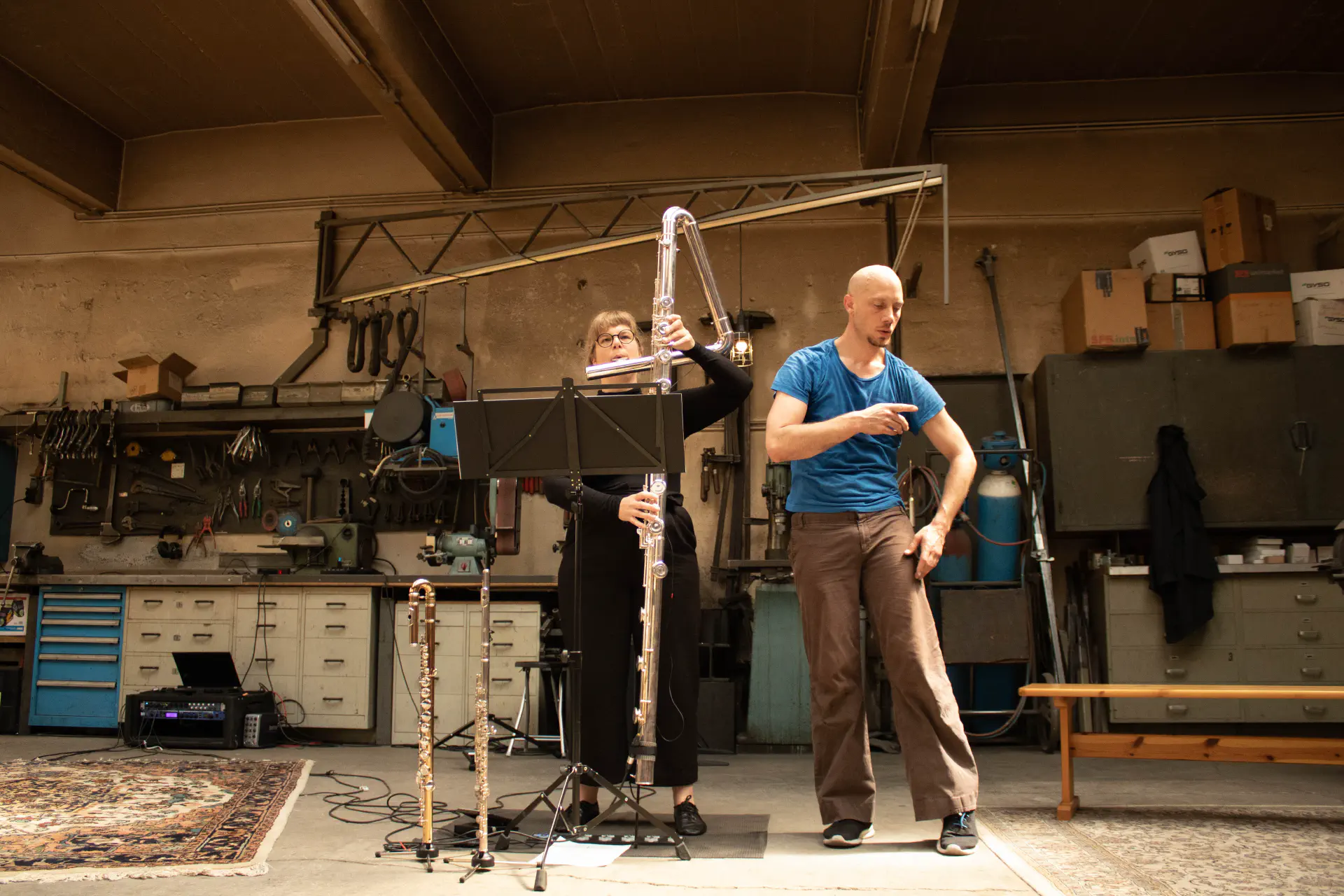 Barbara Minder, composition & flûtes traversières augmentées - Matthieu Amiguet, composition, réalisation en informatique musicale & flûtes traversières augmentées - Olivier Bélanger, développement logiciel - Cédric Liardet, prise de son - Nicolas Meyer, graphisme.